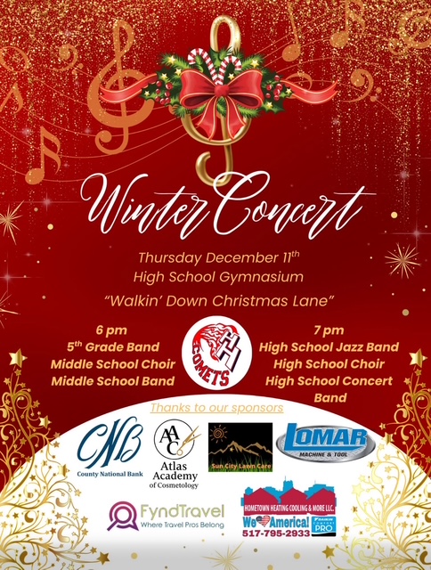 Come join us for a festive evening of entertainment and enjoy the talents of our elementary, middle, and high school student musicians on Thursday, December 11th!